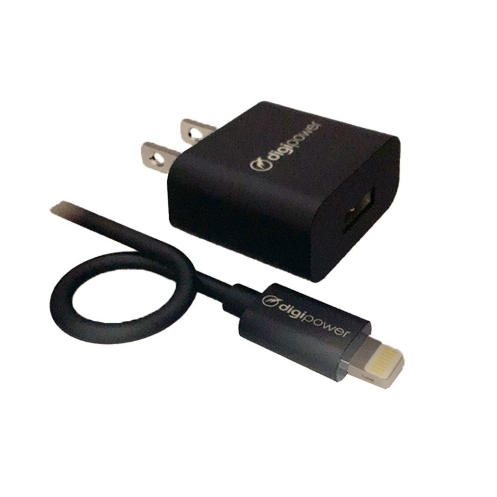 Digipower Wall Charger 2.4 Amp InstaSense 1 Port USB-A with Lightning MFI to USB-A Cable 5ft Black