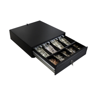 Adesso Cash Drawer with Insert Tray POS 16in 3 Point Locking Latch Bills & Coin Trays - Black