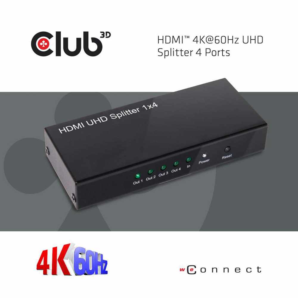 HDMI 4K60HZ 2.0 UHD Splitter 4 Ports Adapter Black