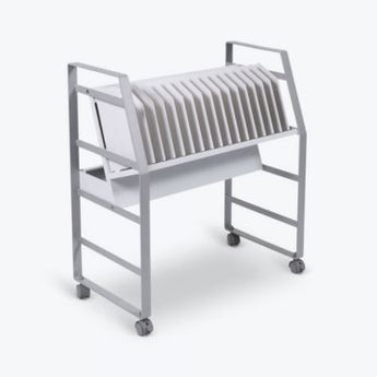 Luxor Charging Cart Steel 16 Tablets Chromebooks Rolling 4 Casters Includes16 Outlet Surge 450 Joules Protection 10ft Cord Sloped & Padded Compartments
