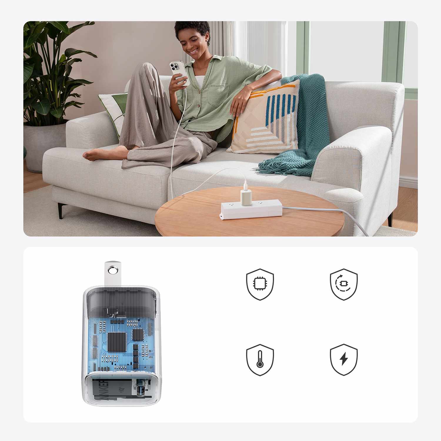 Nano USB-C Wall Charger 30W with AKSD 3ft C-C Eco Braided Cable White