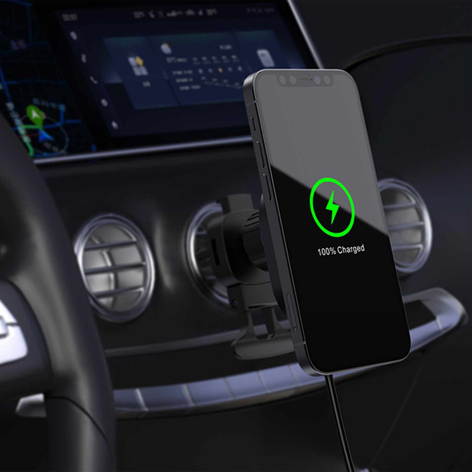 Qi2 Wireless Charging Car Mount 15W MagSafe Compatible Black